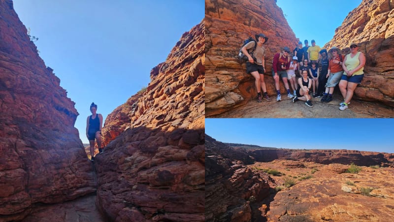 At dawn, we set out with Zoe to tackle the famous Kings Canyon Rim Walk. We were told to bring plenty of water and started early to beat the heat. The toughest part came right away, a steep climb known as Heartbreak Hill. It definitely lived up to its name!